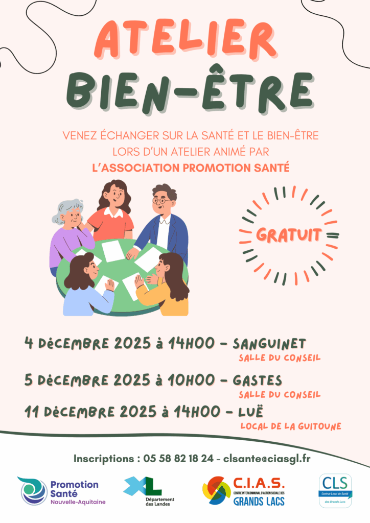 L’association Promotion Santé Nouvelle-Aquitaine, en partenariat avec le CIAS des Grands Lacs, organise des ateliers à destination, en priorité, des séniors de +60 ans avec pour objectifs :