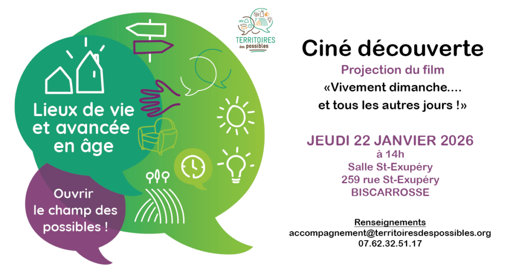 Organisé par Territoires des Possibles, en partenariat avec le CIAS des Grands Lacs, cette projection sera suivie d’un temps d’échanges afin de :